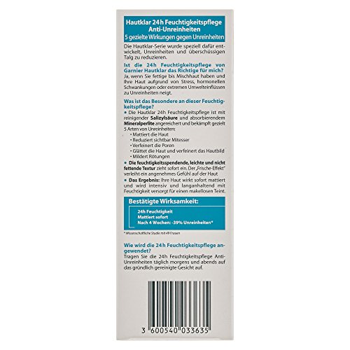 Specification: Garnier Hautklar 24h Feuchtigkeitspflege Gesicht Anti-Unreinheiten, 40 ml