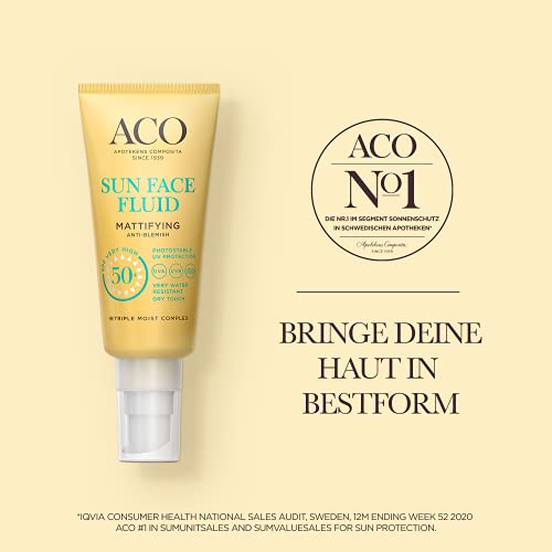 Specification: ACO Sun Face Fluid Mattifying LSF 50+ – Leichte Sonnenschutz Lotion für das Gesicht mit sehr hoher Schutz- für normale…