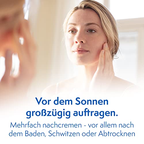 Tragen Sie das Sonnenschutz-Gel großzügig auf Gesicht und Hände auf. Cremen Sie nach Bedarf nach – vor allem nach dem Baden, Schwitzen oder Abtrocknen.