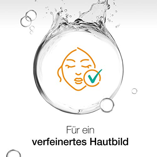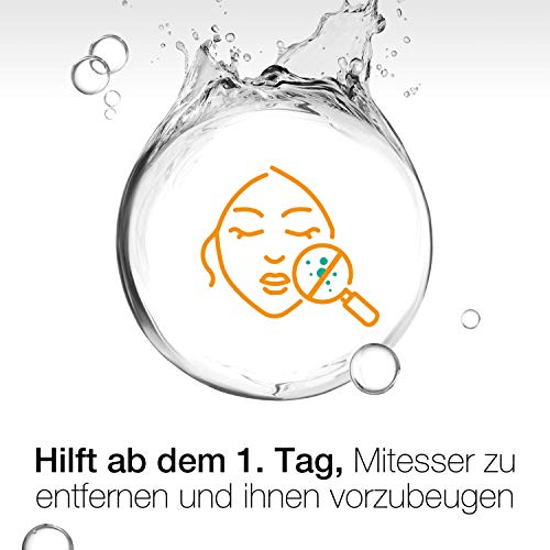 Dieses öl- und silikonfreie Gesichtswasser klärt die Haut und hilft, die Poren von Mitesser verursachendem Schmutz und überschüssigem Talg zu befreien. Wissenschaftlich bestätigt: Es hilft ab dem 1. Tag, Mitesser und Hautunreinheiten zu entfernen und ihnen vorzubeugen – für ein verfeinertes Hautbild. Die Anwendung ist kinderleicht: Morgens und abends ein Wattepad mit dem Gesichtswasser tränken und damit sanft über Gesicht und Halt streichen. Empfindliche Augenpartien aussparen. Kein Abwaschen nötig. Kontakt mit den Augen vermeiden. Nicht auf gereizter Haut anwenden. Anwendung beenden, falls Hautirritationen auftreten. Das Gesichtswasser erfrischt die Haut und beugt auch der Bildung von Pickeln vor. Es hat einen angenehm leichten Geruch und hinterlässt ein spürbar weiches Gefühl auf der Haut – der ideale Porenreiniger für jeden Tag.