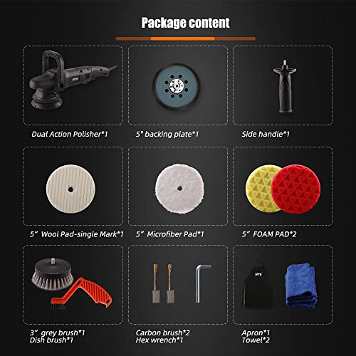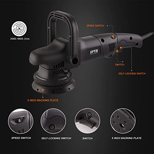 Specification: Exzenter Poliermaschine, Exzenterpolierer, SPTA 15mm-1100W Polierer mit 6 Variable Geschwindigkeit 2000-4800RPM, 125 mm…