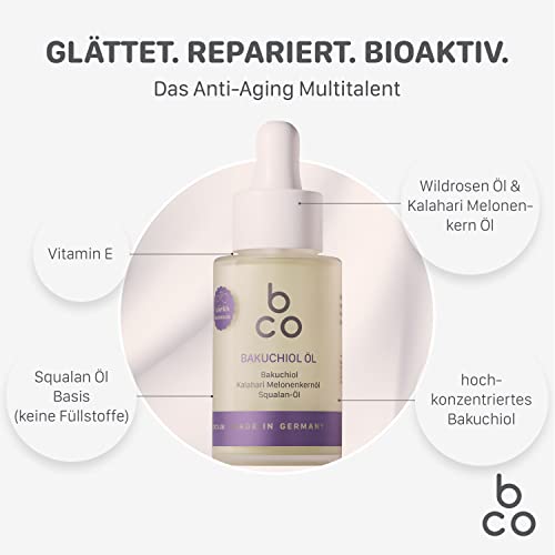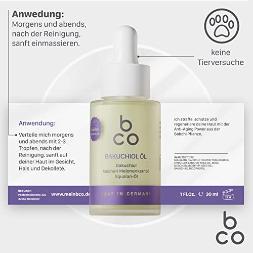 Specification: bco Bakuchiol Öl – straffende Gesichtspflege auf Squalan-Öl Basis, pflanzliche Retinol Alternative, natürliches Anti…