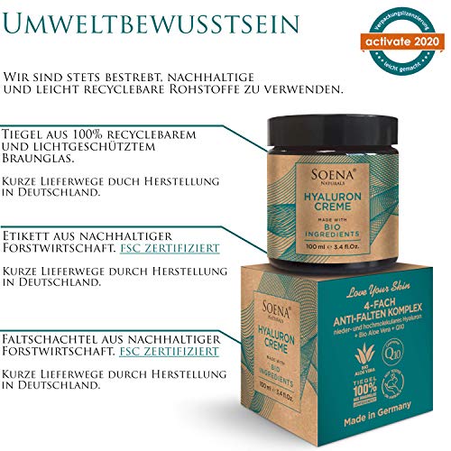 Specification: BIO HYALURON CREME +Q10 Hyaluronsäure Hochdosiert | 4-Fach Anti-Falten -100ml | Tages- & Nachtcreme | Hyaluronsäure…