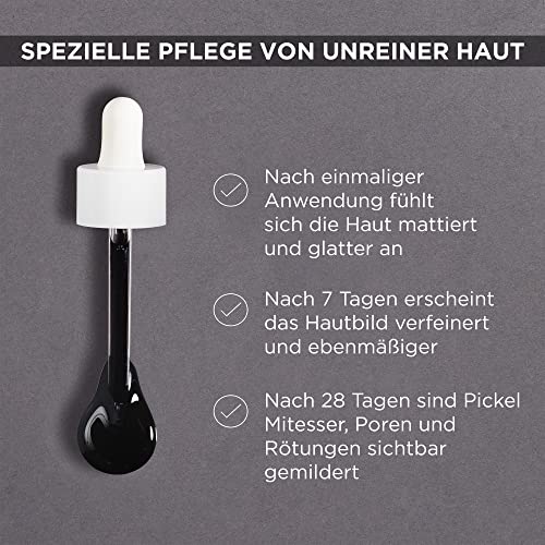 Schwarzes Anti-Unreinheiten Serum gegen Pickel sowie Mitesser für ein geschmeidigeres, ebenmäßigeres Hautbild, Geeignet für schnell fettende und unreine Haut