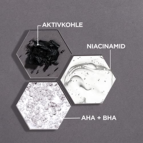 Vegane Formel mit AHA für ein sanftes Peeling unebener Haut, BHA zur Verminderung von Pickeln und Verkleinern von Poren, Reinigende Kohle für eine mattierende Wirkung