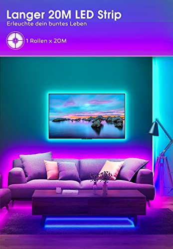 LED Strip 20m Led Streifen – RGB Farbwechsel LED Band mit Fernbedienung Lichtband Selbstklebend mit Musik Sync Bluetooth…