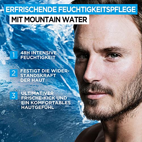 Die Hydra Power Feuchtigkeitscreme Non-Stop Komfort mit Mountain Water von Men Expert spendet 48 Stunden lang intensive Feuchtigkeit und gibt trockener und angespannter Haut keine Chance! Die Pflege mit Mountain Water und Hyaluronsäure stärkt als Tagescreme und Nachtcreme die Widerstandskraft der Haut, um einen Feuchtigkeitsverlust am Tag vorzubeugen. Gleichzeitig sorgt die Gel-zu-Wasser-Textur der Pflegecreme für Männer für den ultimativen Frische-Kick und ein komfortables Hautgefühl. Das ultra-leichte Gel verwandelt sich beim Auftragen in eine wasserähnliche Textur, die nicht fettet, nicht klebt und sofort einzieht, ohne Rückstände zu hinterlassen.
